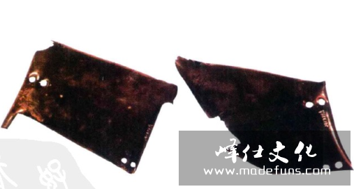 湖南出土的春秋时期的漆皮甲片,历经两千五百年仍坚韧.可见当时的皮甲制作工艺相当先进。